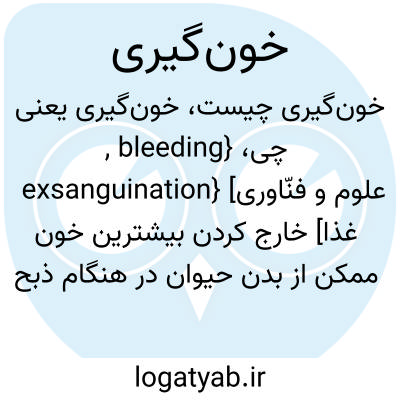 {bleeding , exsanguination} [علوم و فنّاوری غذا] خارج کردن بیشترین خون ممکن از بدن حیوان در هنگام ذبح