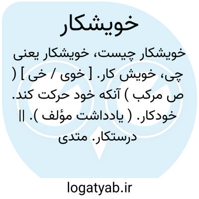 خویش کار. [ خوی / خی ] ( ص مرکب ) آنکه خود حرکت کند. خودکار. ( یادداشت مؤلف ). || درستکار. متدین. ( از حاشیه برهان قاطع ). وظیفه شناس. ( یادداشت مؤلف ). || برزیگر. ( برهان قاطع ) دهقان. کشتکار. ( ناظم الاطباء ). خیشکار: