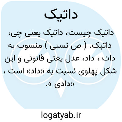 داتیک. ( ص نسبی ) منسوب به دات، داد، عدل یعنی قانونی و این شکل پهلوی نسبت به «داد» است، «دادی ».