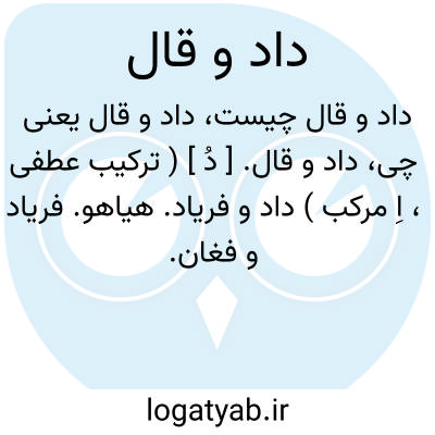 داد و قال. [ دُ ] ( ترکیب عطفی، اِ مرکب ) داد و فریاد. هیاهو. فریاد و فغان.