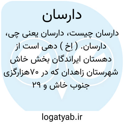 دارسان. ( اِخ ) دهی است از دهستان ایراندگان بخش خاش شهرستان زاهدان که در 70هزارگزی جنوب خاش و 29 هزارگزی خاور شوسه خاش به ایرانشهر واقع است. محلی کوهستانی گرمسیر مالاریایی و سکنه آن 250 تن است. آب آن از قنات تأمین میشود. محصول آنجا غلات، برنج، خرما و شغل اهالی زراعت و راه این ده مالرو است. ( از فرهنگ جغرافیایی ایران ج 8 ).