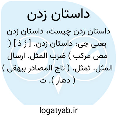 داستان زدن. [ زَ دَ ] ( مص مرکب ) ضرب المثل. ارسال المثل. تمثل. ( تاج المصادر بیهقی ) ( دهار ). تمثیل. ارسال مثل کردن. مثل راندن. نادره و حکمت گفتن. مثل زدن. ضرب مثل. امتثال. ( منتهی الارب ):