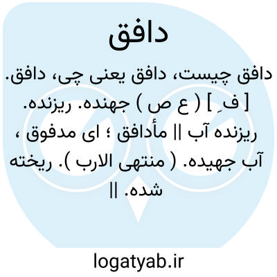 دافق. [ ف ِ ] ( ع ص ) جهنده. ریزنده. ریزنده آب || مأدافق؛ ای مدفوق، آب جهیده. ( منتهی الارب ). ریخته شده. || مأدافق کنایه از آب مردست.