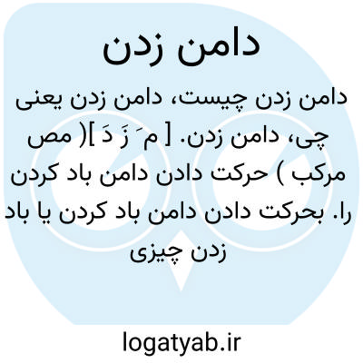 دامن زدن. [ م َ زَ دَ ]( مص مرکب ) حرکت دادن دامن باد کردن را. بحرکت دادن دامن باد کردن یا باد زدن چیزی را چون آتش و غیره.