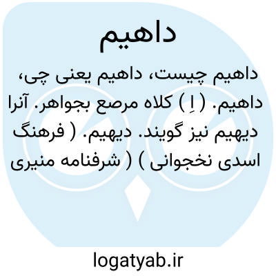 داهیم. ( اِ ) کلاه مرصع بجواهر. آنرا دیهیم نیز گویند. دیهیم. ( فرهنگ اسدی نخجوانی ) ( شرفنامه منیری ). تاج مرصع. ( برهان ). نیم تاجیست مرصع که پادشاهان عجم داشتندی. ( اوبهی ):