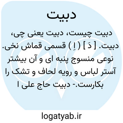 دبیت. [ دَ ] ( اِ ) قسمی قماش نخی. نوعی منسوج پنبه ای و آن بیشتر آستر لباس و رویه لحاف و تشک را بکارست.