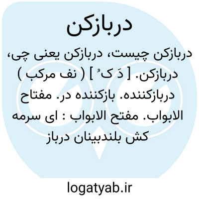 دربازکن درون نشینان.نظامی.|| ( اِ مرکب ) امروز بر یک نوع وسیله الکتریکی اطلاق می شود که بوسیله آن در خانه را می توان از داخل ساختمان باز نمود. || آلت و وسیله گشادن در بطری؛ چوب پنبه کش یکی از انواع آنست.