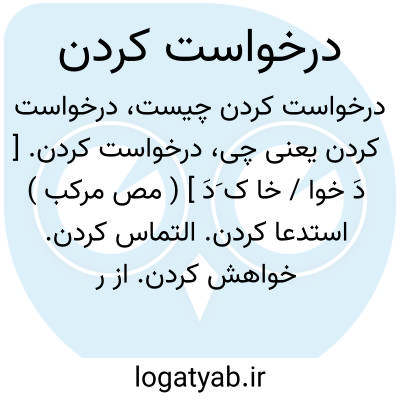 درخواست کردن. [ دَ خوا / خا ک َدَ ] ( مص مرکب ) استدعا کردن. التماس کردن. خواهش کردن. از روی نیاز سؤال کردن. تقاضا کردن. توسل. الحاح. ( تاج المصادر بیهقی ): درخواست می کند امیرالمؤمنین از خداوندتعالی که صاحب منزلت سازد امام پاک القادرباللّه را. ( تاریخ بیهقی چ ادیب ص 311 ). کنم درخواستی زآن روضه پاک که یک خواهش کنی در کار این خاک.نظامی.به بی برگی سخن را راست کردم نه او داد و نه من درخواست کردم.نظامی.بساز آنجا چنان قصری که باید ز مادرخواست کن مزدی که شاید.نظامی.دل خود بر جدائی راست کردم وز ایشان کوشکی درخواست کردم.نظامی.امشب آن شب است که وارغ در گردن اندازیم و درخواست کنیم. ( انیس الطالبین ص 119 ). || تکلیف کردن. حکم کردن. خواستن چیزی را از کسی.