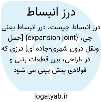 {expansion joint} [حمل ونقل درون شهری-جاده ای] درزی که در طراحی، بین قطعات بتنی و فولادی پیش بینی می شود و امکان انبساط آنها را فراهم کند