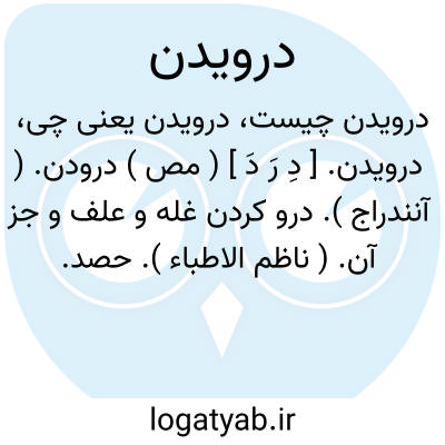 درویدن. [ دِ رَ دَ ] ( مص ) درودن. ( آنندراج ). درو کردن غله و علف و جز آن. ( ناظم الاطباء ). حصد. حصاد. بدرودن. بدرویدن. حصاد کردن. ( یادداشت مرحوم دهخدا ). و رجوع به درودن شود: