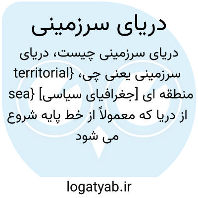 {territorial sea} [جغرافیای سیاسی] منطقه ای از دریا که معمولاً از خط پایه شروع می شود و تا حداکثر 16 کیلومتر به سمت دریای آزاد امتداد می یابد؛ دولت ساحلی بر آب و بستر و زیربستر و فضای بالای این منطقه حاکمیت کامل دارد متـ. آب های سرزمینی territorial waters