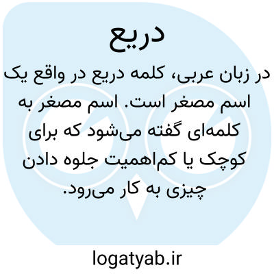 در زبان عربی، کلمه دریع در واقع یک اسم مصغر است. اسم مصغر به کلمه‌ای گفته می‌شود که برای کوچک یا کم‌اهمیت جلوه دادن چیزی به کار می‌رود. دریع کوچک‌شده کلمه درع است که به معنی زره جنگی است. جالب اینجاست که طبق قواعد زبان عربی، اسم مصغر درع باید دریعة باشد (با اضافه شدن “ة” در انتها)، اما در عمل کلمه دریع هم به همین منظور استفاده می‌شود، هرچند که از نظر قواعد زبانی، کمی غیرمعمول به نظر می‌رسد.