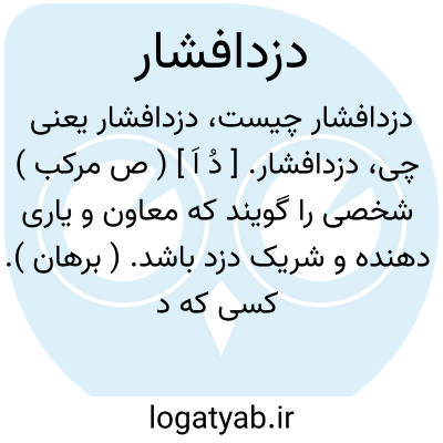 دزدافشار. [ دُ اَ ] ( ص مرکب ) شخصی را گویند که معاون و یاری دهنده و شریک دزد باشد. ( برهان ). کسی که در ظاهر خویشتن را صاحب اختیار وانماید و در باطن شریک و محرم راز دزد باشد. ( آنندراج ). کسی را گویند که معین و شریک دزد باشد و راز دزد ازو پوشیده نماند. ( انجمن آرا ). معاون و یاری دهنده دزد و شریک دزد. ( ناظم الاطباء ). همدست دزد. ( از مهذب الاسماء ). ملص. ( دهار ). دزدافشره. شریک دزد و رفیق قافله: به دزدافشار نفس اماره سریکی کرده اند تا او راهها و نشانها را می نماید. ( معارف بهاء ولدص 161 ).