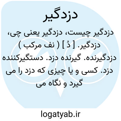 دزدگیر. [ دُ ] ( نف مرکب ) دزدگیرنده. گیرنده دزد. دستگیرکننده دزد. کسی و یا چیزی که دزد را می گیرد و نگاه میدارد. ( ناظم الاطباء ). || شحنه و نظرباز که شناختن و گرفتن دزد در عهده اوست. ( آنندراج ):