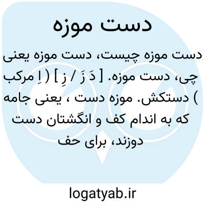 دست موزه. [ دَ زَ / زِ ] ( اِ مرکب ) دستکش. موزه دست، یعنی جامه که به اندام کف و انگشتان دست دوزند، برای حفظ دست از سرما یا آفتاب یا گردوغبار و غیره و به دست پوشند. ( یادداشت مرحوم دهخدا ). قفاز. ( دهار ):