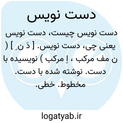 دست نویس. [ دَ ن ِ ] ( ن مف مرکب، اِ مرکب ) نویسیده با دست. نوشته شده با دست. مخطوط. خطی.