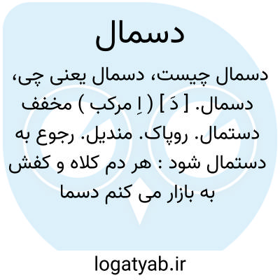 دسمال. [ دَ ] ( اِ مرکب ) مخفف دستمال. روپاک. مندیل. رجوع به دستمال شود: