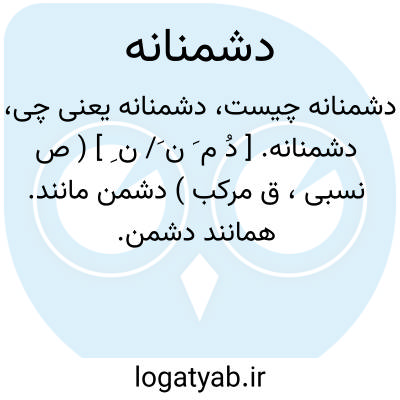 دشمنانه. [ دُ م َ ن َ/ ن ِ ] ( ص نسبی، ق مرکب ) دشمن مانند. همانند دشمن.