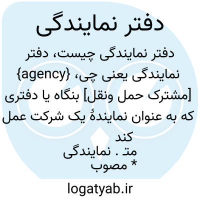 {agency} [مشترک حمل ونقل] بنگاه یا دفتری که به عنوان نمایندۀ یک شرکت عمل کند متـ. نمایندگی * مصوب فرهنگستان اول