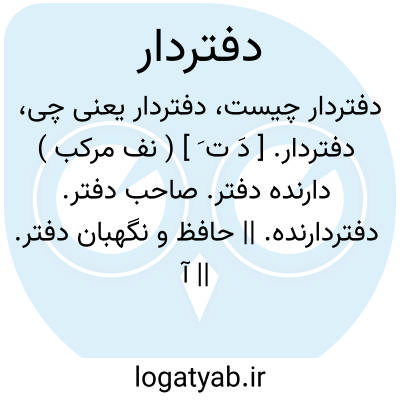 ( صفت ) ۱ - آنکه شغلش ثبت نامه ها در دفتر است. ۲ - خزانه دار. ۳ - مواظب مالیات. ۴ - رئیس اداره دفتر. ۵ - محاسب حسابدار. ۶ - کسی که دفترهای حساب را به دستور حسابداری مینویسد. ۷ - صاحب دفتر خانه.
