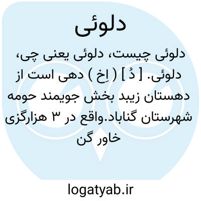 دلوئی. [ دُ ] ( اِخ ) دهی است از دهستان زیبد بخش جویمند حومه شهرستان گناباد.واقع در 3 هزارگزی خاور گناباد و سر راه شوسه عمومی قاین به گناباد با 1393 تن سکنه. آب آن از قنات و راه آن مالرو است. ( از فرهنگ جغرافیایی ایران ج 9 ).