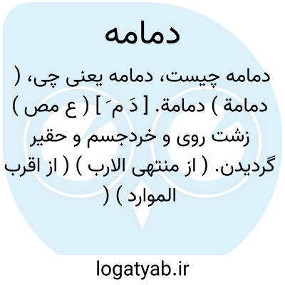 ( دمامة ) دمامة. [ دَ م َ ] ( ع مص ) زشت روی و خردجسم و حقیر گردیدن. ( از منتهی الارب ) ( از اقرب الموارد ) ( ناظم الاطباء ). زشت روی شدن. ( المصادر زوزنی ) ( ازتاج المصادر بیهقی ) ( دهار ). و رجوع به دمامه شود.