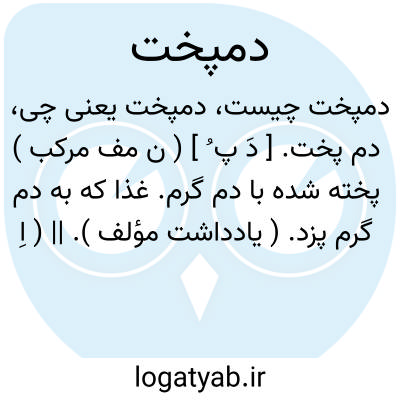 ( اسم ) خوراکی مانند پلو و آن چنانست که برنج را میپزند ولی آبکش نکنند و گاه بدان عدس لوبیا ماش افزایند دم پخت دم پختی.