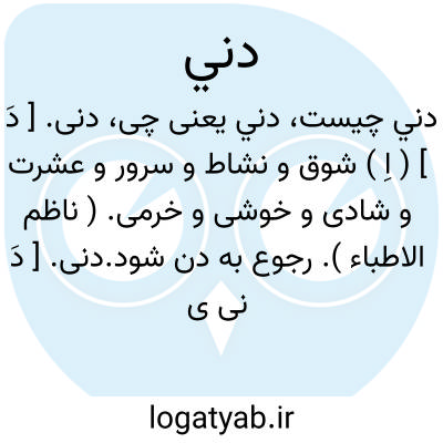 دنی. [ دَ ] ( اِ ) شوق و نشاط و سرور و عشرت و شادی و خوشی و خرمی. ( ناظم الاطباء ). رجوع به دن شود.