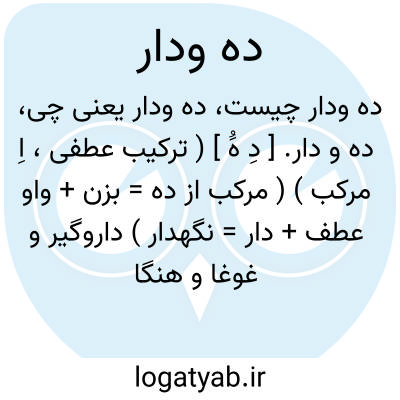 ده و دار. [ دِ هَُ ] ( ترکیب عطفی، اِ مرکب ) ( مرکب از ده = بزن + واو عطف + دار = نگهدار ) داروگیر و غوغا و هنگامه و معرکه و آوازمبارزان. ( از ناظم الاطباء ). همهمه جنگ. بزن و بگیرو نگهدار. ( یادداشت مؤلف ). داروگیر و کر و فر. ( ازبرهان ) ( آنندراج ) ( از شرفنامه منیری ):