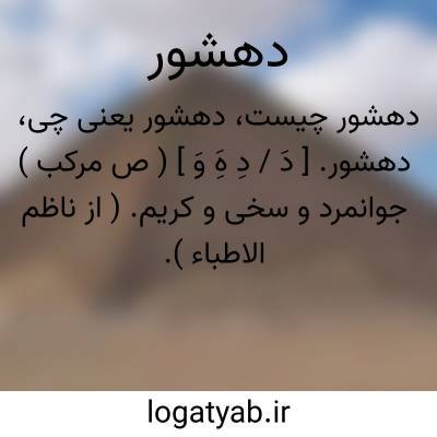 دهشور. [ دَ / دِ هَِ وَ ] ( ص مرکب ) جوانمرد و سخی و کریم. ( از ناظم الاطباء ).