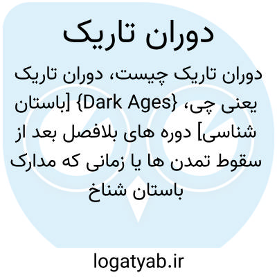 {Dark Ages} [باستان شناسی] دوره های بلافصل بعد از سقوط تمدن ها یا زمانی که مدارک باستان شناختی مربوط به آن، در مقایسه با ادوار پیشین، به دوره ای از انحطاط اشاره دارد