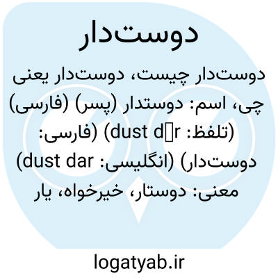 اسم: دوستدار (پسر) (فارسی) (تلفظ: dust dār) (فارسی: دوست‌دار) (انگلیسی: dust dar)