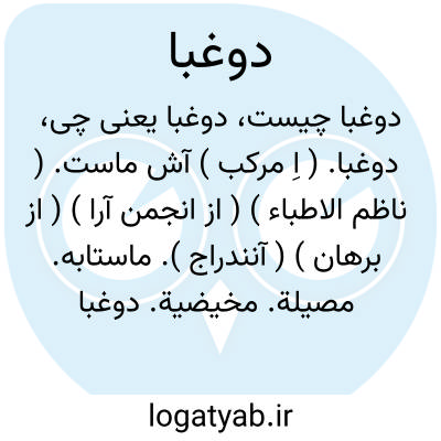 دوغبا. ( اِ مرکب ) آش ماست. ( ناظم الاطباء ) ( از انجمن آرا ) ( از برهان ) ( آنندراج ). ماستابه. مصیلة. مخیضیة. دوغباج. آش کشک. آش دوغ. دوغ وا. مضلبة. ( یادداشت مؤلف ). مضیرة. ( زمخشری ) ( دهار ). آش جغرات. ( از شرفنامه منیری ):