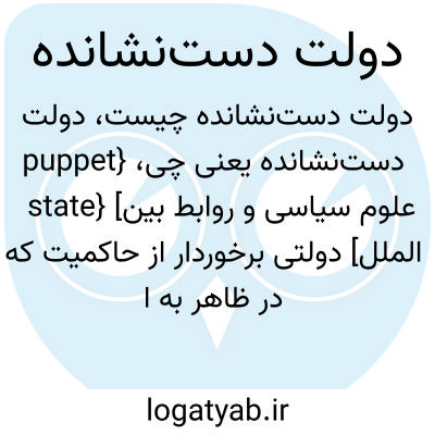 {puppet state} [علوم سیاسی و روابط بین الملل] دولتی برخوردار از حاکمیت که در ظاهر به ارادۀ دولت قوی تر عمل می کند، ولی درواقع استقلال نسبی دارد