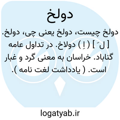 دولخ. [ ل َ ] ( اِ ) دولاخ. در تداول عامه گناباد. خراسان به معنی گرد و غبار است. ( یادداشت لغت نامه ).