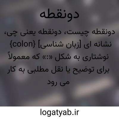 {colon} [زبان شناسی] نشانه ای نوشتاری به شکل «:» که معمولاً برای توضیح یا نقل مطلبی به کار می رود