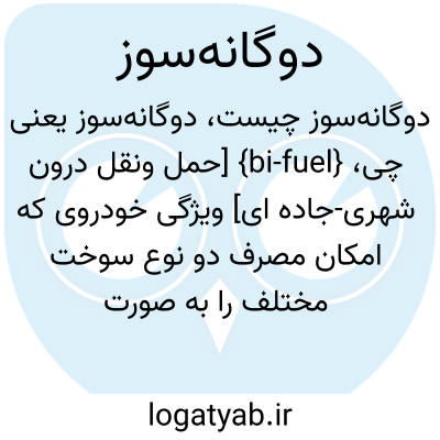 {bi-fuel} [حمل ونقل درون شهری-جاده ای] ویژگی خودروی که امکان مصرف دو نوع سوخت مختلف را به صورت مجزا داشته باشد و در هر زمان فقط یکی از این دو نوع سوخت وارد موتور آن شود