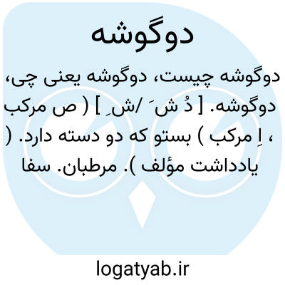 دوگوشه. [ دُ ش َ /ش ِ ] ( ص مرکب، اِ مرکب ) بستو که دو دسته دارد. ( یادداشت مؤلف ). مرطبان. سفالین کوچک: در خواب چنین دیدم که دو گوشه جغرات آوردند. ( انیس الطالبین بخاری ). حضرت خواجه با من این خواب می گزارد که خادمه دو گوشه جغرات آورد. ( انیس الطالبین بخاری ). || هر ظرفی که دو دسته داشته باشد: