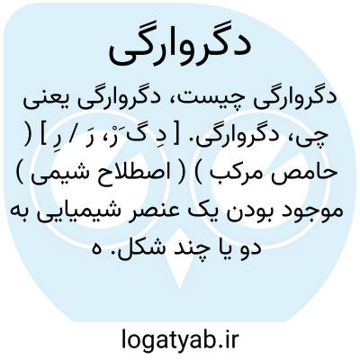 دگروارگی. [ دِ گ َرْ، رَ / رِ ] ( حامص مرکب ) ( اصطلاح شیمی ) موجود بودن یک عنصر شیمیایی به دو یا چند شکل. هر یک از این اشکال را یک ( شکل ) دگروار آن عنصر خوانند. دگروارها در خواص فیزیکی ( مانند رنگ و سختی ) متفاوت اند و در عده یا ترتیب اتمها در مولکول و در فعالیت شیمیایی نیز ممکن است متفاوت باشند ولی در بیشتر خواص شیمیایی دیگر یکسان اند. نمونه بارز دگروارگی در کربون دیده می شود که سه دگروار آن کربون بی شکل، گرافیت و الماس است. ازسایر عناصر شیمیایی که دگروارگی آنها جالب است اکسیژن، فوسفور و گوگرد است. ( از دایرةالمعارف فارسی ).