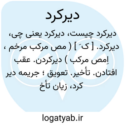 دیرکرد. [ ک َ ] ( مص مرکب مرخم، اِمص مرکب ) دیرکردن. عقب افتادن. تأخیر. تعویق؛ جریمه دیر کرد، زیان تأخیر در پرداخت؛ چک شما هفت روز دیر کرد دارد، هنگام دریافت آن بتأخیر افتاده است.