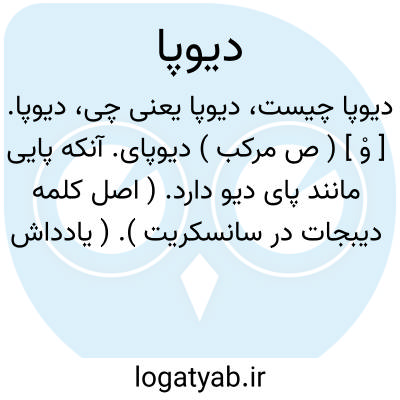 دیوپا. [ وْ ] ( ص مرکب ) دیوپای. آنکه پایی مانند پای دیو دارد. ( اصل کلمه دیبجات در سانسکریت ). ( یادداشت مؤلف ). || ( اِ مرکب ) عنکبوت. ( برهان ) ( از جهانگیری ) ( صحاح الفرس ) ( لغت فرس اسدی ) ( از آنندراج ). غنده. تننده. تنند. وِندرِ ( در تداول مردم قزوین ). کارتنه. تنندو. کراتن. ( یادداشت مؤلف ). جنسی ازعنکبوت و دیوپای نیز گویندش و جولاهک و غنده و مگس گیر اجناس دیگرند. ( از شرفنامه منیری ). غنده بود و اورا تننده و عنکبوت نیز گویند. ( اوبهی ):