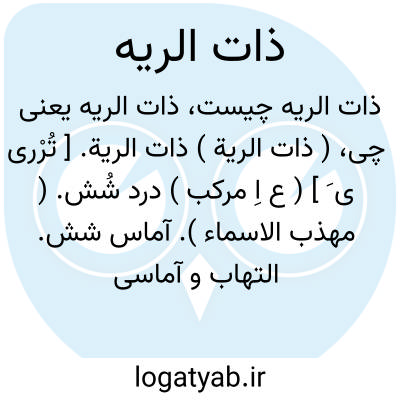 ( ذات الریة ) ذات الریة. [ تُرْری ی َ ] ( ع اِ مرکب ) درد شُش. ( مهذب الاسماء ). آماس شش. التهاب و آماسی در شش با درد و سرفه و تب و تنگی نفس. و صاحب کشاف اصطلاحات الفنون گوید: نزد پزشکان ورمی است در جگر سفید، چنانکه در بحر الجواهر گفته و در آقسرائی گوید: نزد پزشگان ورمی است در جگر سفید، چنانکه در بحر الجواهر گفته و در آقسرائی گوید: ورمی است حارّ در ریة - انتهی. و صاحب ذخیره گوید: ذات الریة، آماس شش را گویند.