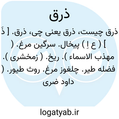 ذرق. [ ذَ ] ( ع مص ) سرگین افکندن مرغ. ( تاج المصادر بیهقی ). فضله افکندن طیور. سرگین اوکندن مرغ. ( زوزنی ). پیخال افکندن. ریخ زدن مرغ. اِذراق. || ( اِ ) بلغنی ذرق من قول؛ ای طرف. ( مهذب الاسماء ) ( لغت نامه اسدی ).