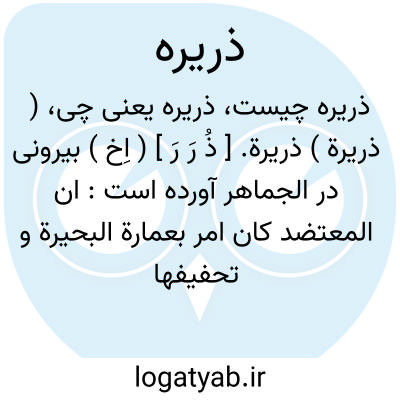 ( ذریرة ) ذریرة. [ ذُ رَ رَ ] ( اِخ ) بیرونی در الجماهر آورده است: ان المعتضد کان امر بعمارة البحیرة و تحفیفها بالریاض و انفق علی الابنیة ستین الف دینار و کان یخلو فیها مع جواریه و له فیما بینهن حظیة تسمی ذریره فقال البسامی: