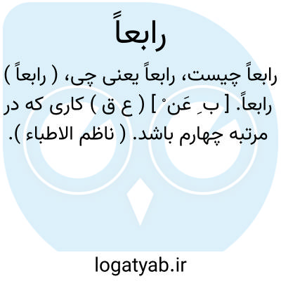 ( رابعاً ) رابعاً. [ ب ِ عَن ْ ] ( ع ق ) کاری که در مرتبه چهارم باشد. ( ناظم الاطباء ).