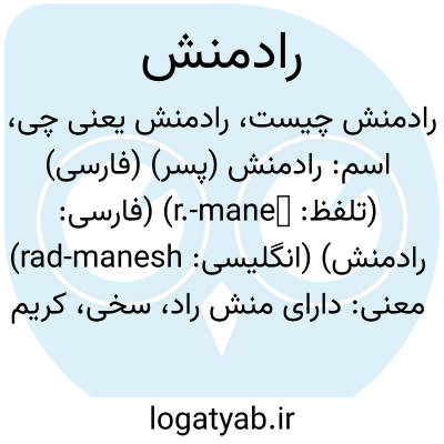 اسم: رادمنش (پسر) (فارسی) (تلفظ: r.-maneš) (فارسی: رادمنش) (انگلیسی: rad-manesh)