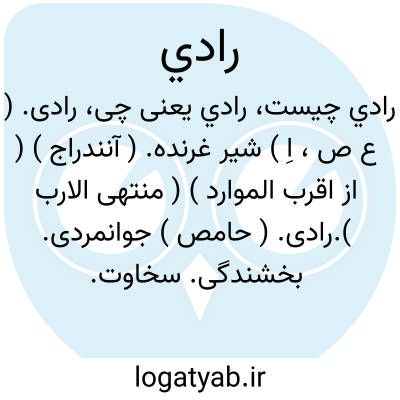 رادی. ( ع ص، اِ ) شیر غرنده. ( آنندراج ) ( از اقرب الموارد ) ( منتهی الارب ).
