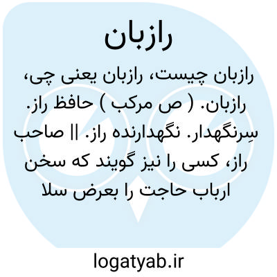 رازبان. ( ص مرکب ) حافظ راز. سِرنگهدار. نگهدارنده راز. || صاحب راز، کسی را نیز گویند که سخن ارباب حاجت را بعرض سلاطین رساند.( آنندراج ) ( انجمن آرا ) ( شعوری ج 2 ص 11 ):