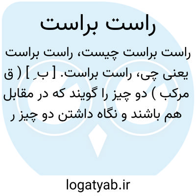 راست براست. [ ب ِ ] ( ق مرکب ) دو چیز را گویند که در مقابل هم باشند و نگاه داشتن دو چیز را روبرو و مقابل یکدیگر نیز گفته اند.( از لغت محلی شوشتر خطی متعلق بکتابخانه مؤلف ). || راه هموار و مسطح را نیز گویند و در لهجه شوشتر راس براس نیز گویند. ( از لغت محلی شوشتر ).