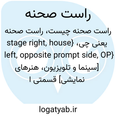 {stage right, house left, opposite prompt side, OP} [سینما و تلویزیون، هنرهای نمایشی] قسمتی از صحنه که در طرف راست بازیگر قرار دارد و از دید تماشاگر طرف چپ صحنه محسوب می شود